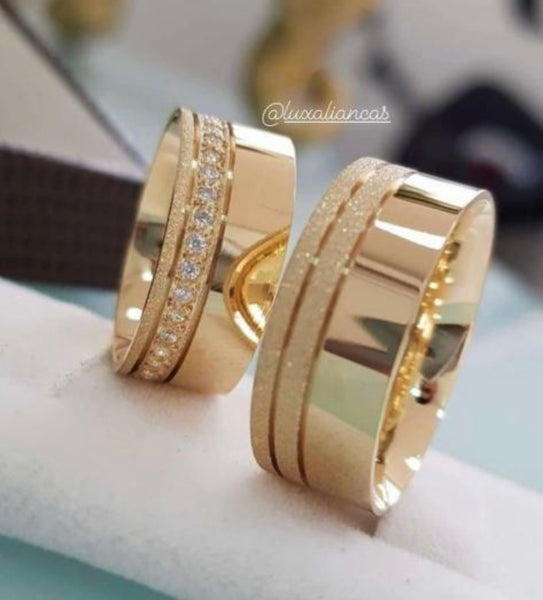 Par de alianças banhadas a ouro 18k, 8mm, anatômicas.
