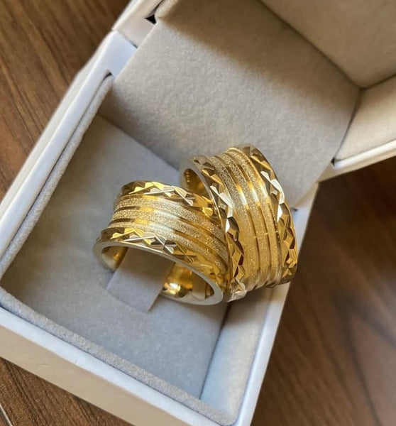 Par de alianças banhadas a ouro 18k, 10mm, anatômicas.