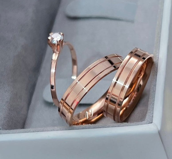 Par de alianças banhadas em ouro rose gold, 5mm, anatômicas.
