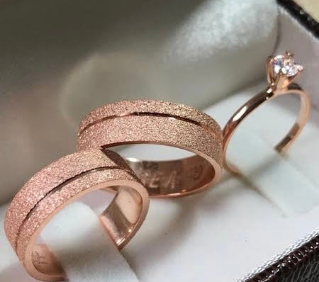 Par de alianças banhadas em ouro rose gold, 6mm, anatômicas, feminina com meia volta de zircônias cravejadas.