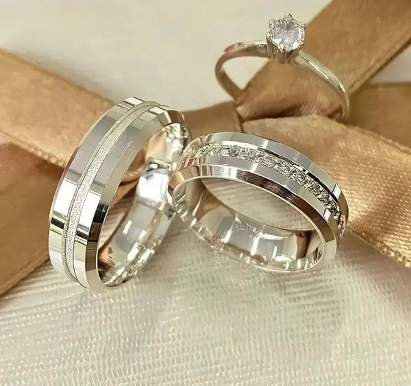 Par de alianças em prata 950 legítima, 6mm de largura, chanfradas, anatômicas, feminina com meia volta de zircônias cravejadas. (Outras opções de cores das pedras entrar em contato via WhatsApp).  ANEL SOLITÁRIO DE BRINDE  10...